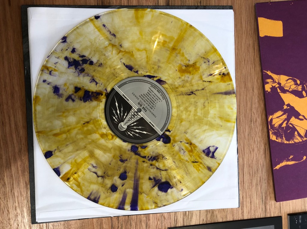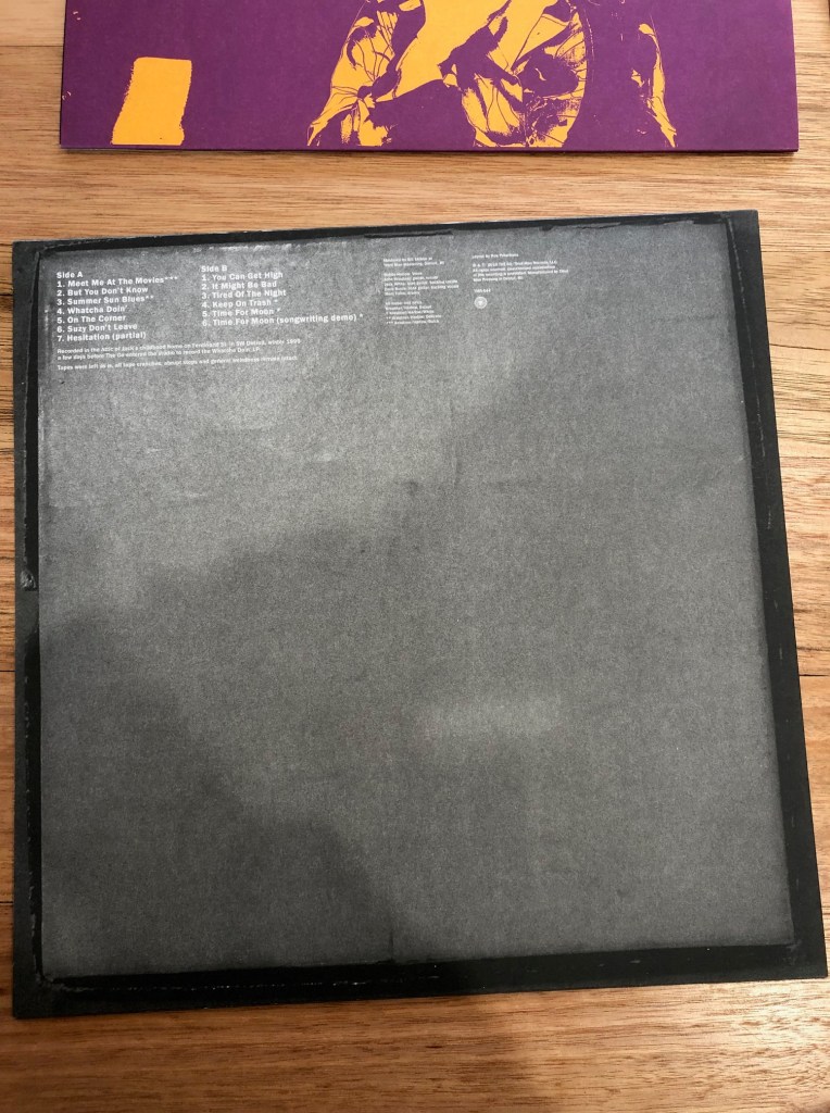 The package includes a 10″x8″ photo book, 7″ Alternative takes, Watcha Doin’ Lp (orange coloured vinyl) and the Attic Demos LP (yellow/purple coloured vinyl)